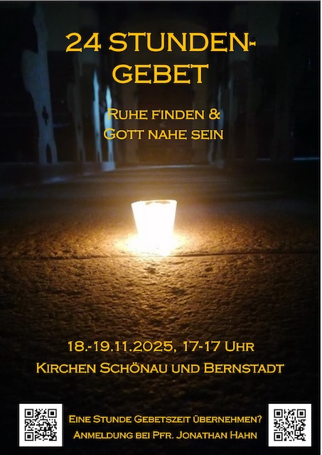 18. November, 17 Uhr – 24-Stunden-Gebet in den Kirchen Schönau und Bernstadt (Informationen s.u.)